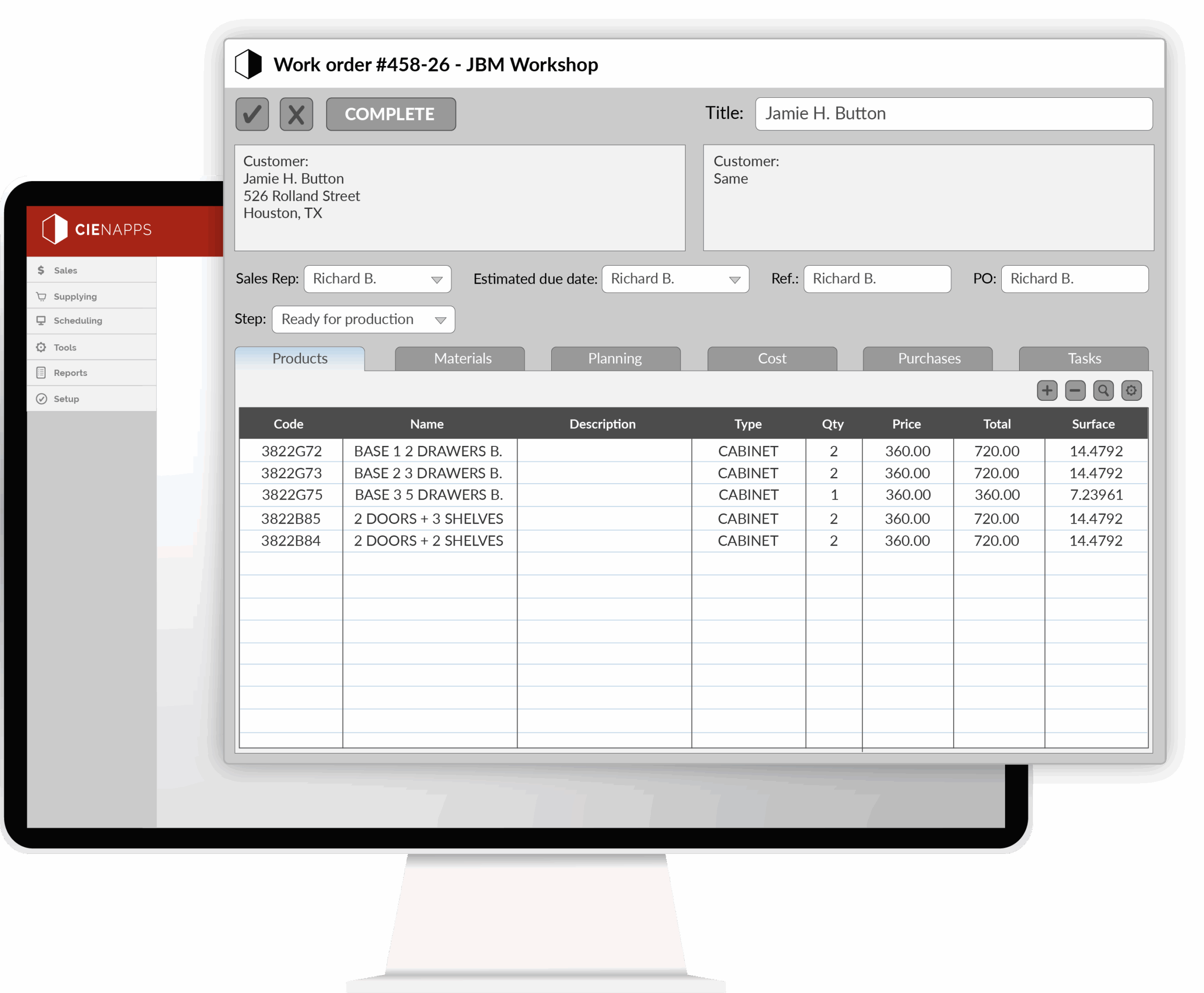 Un bon suivi de production, c’est voir en un coup d’œil où en est chaque bon de travail : portes reçues, ateliers complétés, retards potentiels, dates clés, etc.